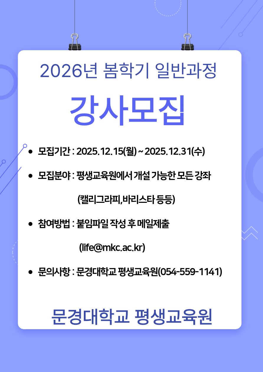 [2025학년도 평생교육원 가을학기 수강생 모집]